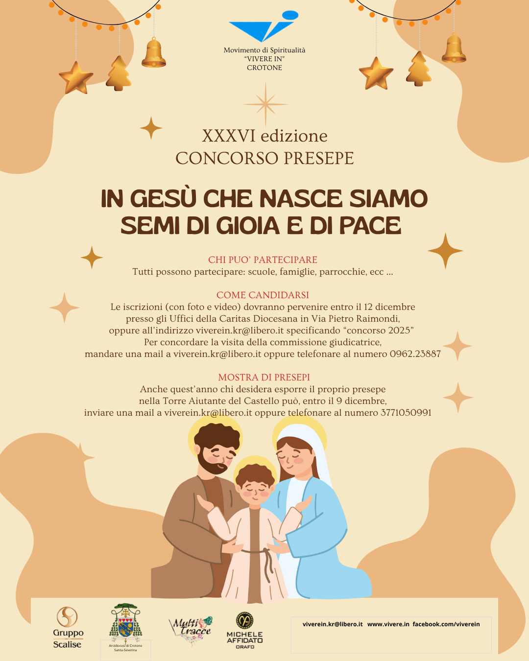 Il Movimento Vivere In nel quadro delle sue iniziative di promozione umana e culturale organizza la XXXVI edizione del CONCORSO PRESEPE – Natale 2025.